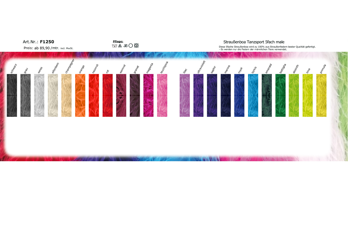 Straussenfedern bester Qualität. Es wurden nur Federn der männlichen Tiere verarbeitet (male). 100% Straußenfedern